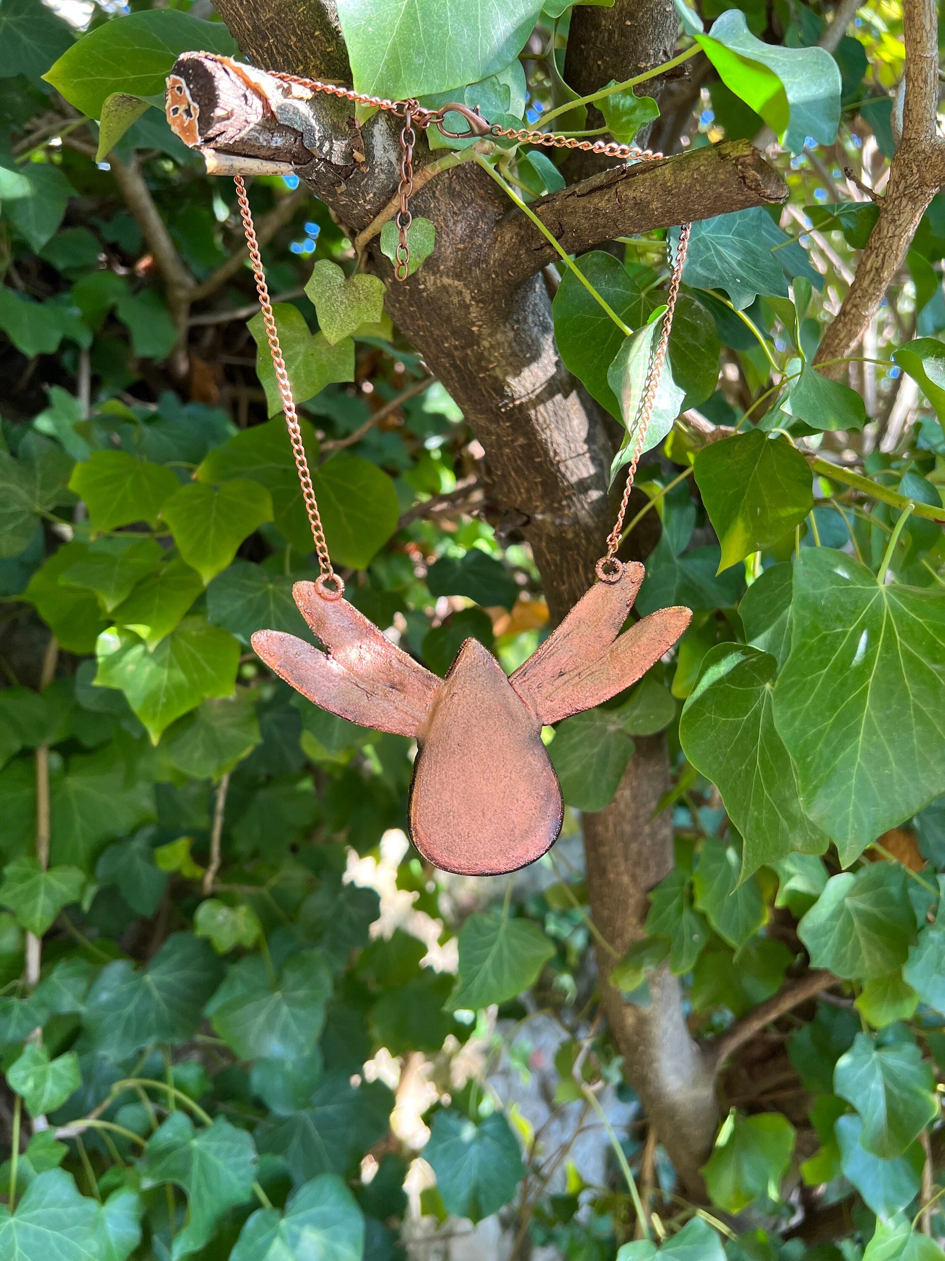 The technique used to make this unique piece is called electro forming or eforming. It is a process of creating jewelry by sculpting a structure with stones, bones, organics and epoxy and then use a system of copper forming by immersion in a bath in which a current flows and causes copper to grow, atom by atom, on the conductive parts of the jewelry.